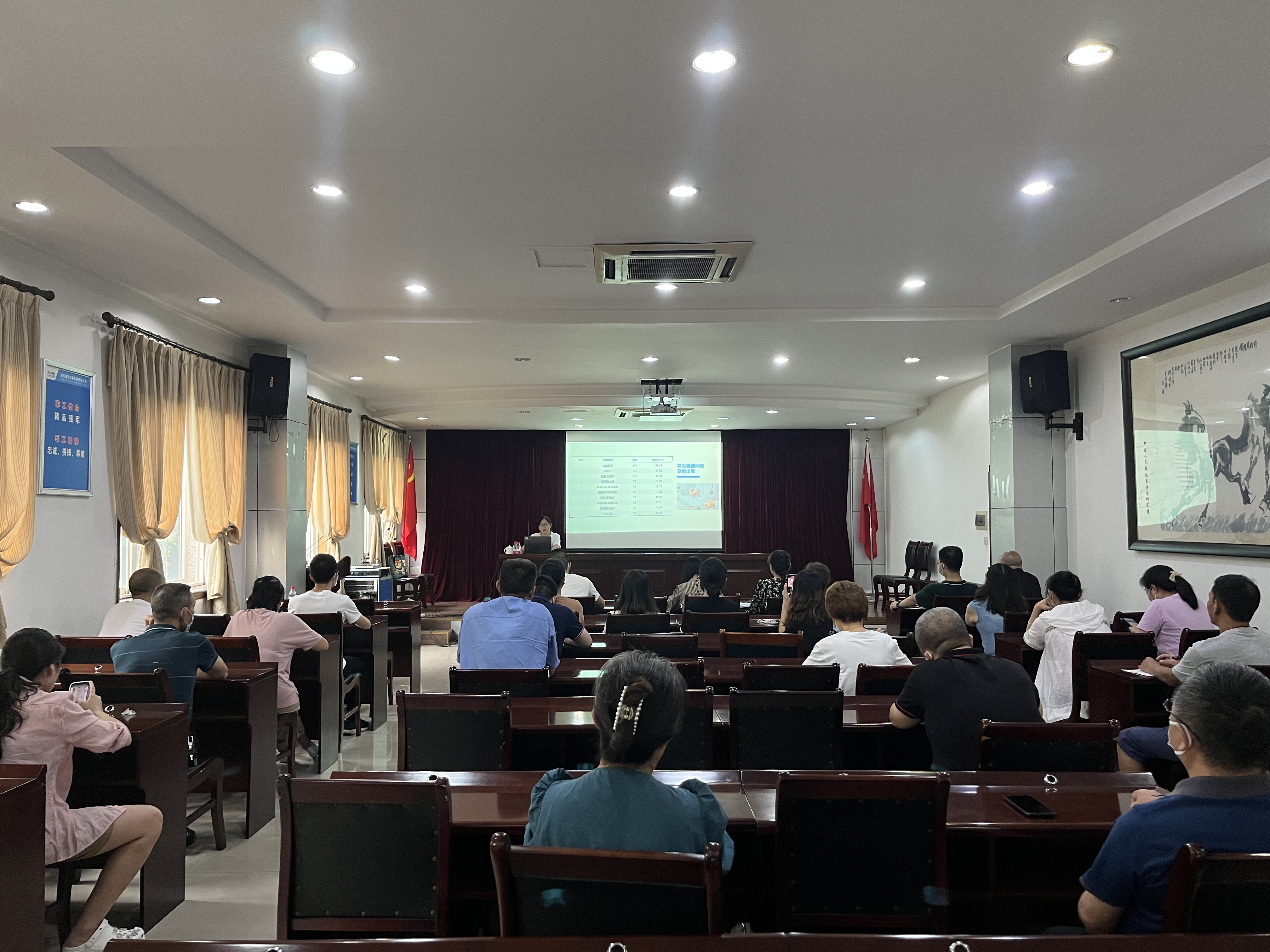 9月16日下午,公司工会特邀重庆医科大学附属第一医院健康体检部专家李林蔓医生、李永强医生在公司科技楼三楼会议室为公司员工进行了现场健康知识讲座。公司30名员工参加了此次活动。